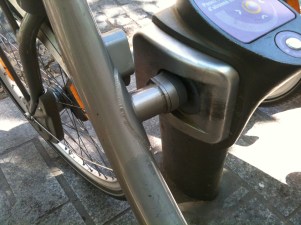 * Regarding the method for taking a new bike, I personally prefer the BIXI (London) option: you put your credit card in the machine, you’re given a PIN, a you have 5 minutes to choose your bike. In Paris, you need not to lose the ticket (which is sometimes only partially printed, and sometimes also not printed at all…), choose your bike, log on to the station, hope that no one with a Navigo card steals the bike you’ve chosen in the mean time, rush to the bike and press the button to unlock it before the timeout (especially hard on big stations, as you only have 10 seconds).